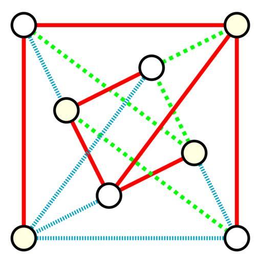 | Keywords: K44 arboricity.svg Partition of the complete bipartite graph K<sub>4 4</sub> into three forests showing that it has arboricity three Own 2007-10-24 David Eppstein Files by User David Eppstein from en wikipedia Complete bipartite graph K 4 4 Graph coloring; edge |