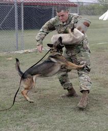 Keywords: outdoor 902nd Military Working Dog Detachment, Fort Sill, Okla., Nov. 7, 2016. German Shepherd Chili shows how she can attack and find hidden narcotics. Her reward is her kong toy. 902nd Military Working Dog Detachment, Fort Sill, Okla., Nov. 7, 2016. German Shepherd Chili shows how she can attack and find hidden narcotics. Her reward is her kong toy.