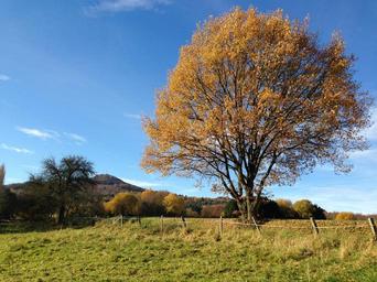 Keywords: königswinter germany autumn log lone tree yellow leaves