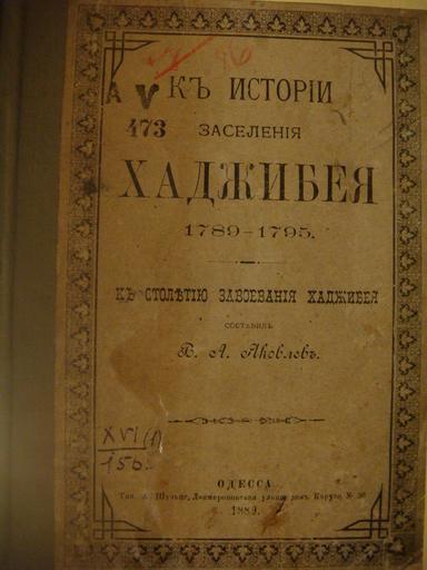 | Keywords: K istorii zaselaniya Codjabey book of Yakovlev 1889.JPG  en Title of a book about Cadjabey/Odessa history published in 1889 100 years anniversary since Cadjabey was captured by Russians ru Обложка книги В А Яковлева К исто ии заселения Хаджибея изданной в 1889 к столетию завоевания Хаджибея Из соб ания Одесского исто ико-к аеведческого музея own HOBOPOCC 2009-11-29 PD-Ukraine Books of the history of Ukraine Books from Russia 1889 History of Odessa House of Yakovlev Published in Odessa K istorii zaseleniya Khadzhibeya. Book of Yakovlev 1889.jpg  en Title of a book about Cadjabey/Odessa history published in 1889 100 years anniversary since Cadjabey was captured by Russians ru Обложка книги В А Яковлева К исто ии заселения Хаджибея изданной в 1889 к столетию завоевания Хаджибея Из соб ания Одесского исто ико-к аеведческого музея own HOBOPOCC 2009-11-29 PD-RusEmpire Books of the history of Ukraine Books from Russia 1889 History of Odessa Books about Odessa House of Yakovlev Published in Odessa 1889 in Odessa |