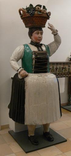 | Keywords: Kachelofen Annamirl um 1740 ÖMV.jpg Kachelofen Annamirl Münzbach Bezirk Perg Oberösterreich um 1740 aus dem Gasthaus Korninger in Münzbach später Sammlung des Thronfolger Franz Ferdinand von dort in das ÖMV <br />Wien Österreichisches Museum für Volkskunde ÖMV-Inv Nr 35 876 own own photograph 2009-11 Photo Andreas Praefcke Own work all rights released Public domain With the redesign of the permanent collection of the Austrian Museum of Ethnology in Vienna in 1994 a unique exhibit came in with Rural pride titled chamber 24 there is a sculptured ceramic figure in the shape and height of a woman The feet are in black loafers and my calves are covered with white stockings Known as Annamirl figure wearing a knee-length black body l apron the bodice and skirt together the baroque idea of ‹ ‹female beauty ideal according to the coat at the waist by so-called Lendenwülste expanded The pleated skirt is covered with a white apron The costume is completed by a green bodice with bright laces and black edged chest panel The white blouse has a black collar and cuffs wearing puffy sleeves of a black stocking A black cloth is tied around the neck under the chin it forms a loop the ends of which stuck in my breast pocket The right hand holds a handkerchief and is supported on the hip the left hand is raised and remains protectively in front of the head load The head with a ruddy face covered a black headscarf tied at the neck A braided handle and filled with fruit basket rests on the head History / Origin The figure furnace has the form of a woman in whose belly the fire is burning and the body loses heat The figure is thus a metaphor for the female being the epitome of domesticity and oven heat Equipped with the attribute of the filled fruit basket Annamirl is the allegorical representation of the Autumn with its fertile income The figure oven is named after his firing technique breech loading oven Such was originally from the next room usually fired from the hallway The female figure stands on a steel plate which is mounted in the amount of the lower coat edge and also forms the floor of the furnace The furnace consists of eleven different shaped ceramic parts produced in the so-called envelope or rollover technology Here a layer of clay is placed over a wooden frame so to speak folded or turned over the furnace is modeled in one piece is before the fire He cut up into parts and only when setting reunited The figure comes from the northern Upper Austria and indeed from Adam's also Attam house in the village Münzbach No 9 in the district Perg In this house the inn grain Inger was housed in the ballroom on the first floor of the furnace was The inn was rebuilt probably after a local fire in 1766 Emergence and establishment of the ballroom was probably temporary and stylistically parallel with the development of so-called good room on the upper floor in the Upper Austrian farmhouses Since the mid-18th Century there were the country furniture their representative list according to the style of living of the rural elite and dominated the popular art sustainable Not sure if the producer has been a local potters since the production of faience special technical knowledge needed History / Museum In 1904 was the art historian and ceramics expert Alfred Walcher of Molthein the news of the worn figure furnace a buxom female person in Adam home to Münzbach 1906 finally sold the former owner of the house Sebastian Grillberger the furnace to the antique dealers Kogler Enns According registration the main asset of the Ethnographic Museum in 1917 the furnace peasant comes from a dedication of Ernst Polack Imperial Council in Vienna Albert Franz titled his post in 1941 in the Vienna Journal of Folklore for the first time called oven Farmer and makes it the local nickname Annamirl known History / culture / context With the beginning of the 18th century genre scenes were from the rural milieu entered the baroque imagery of the upper class Figurenöfen from Upper Austria came time in southern Germany to great popularity Annamirl differs from the comparable properties in palaces and monasteries by their coarse appearance far bourgeois and aristocratic beauty principles Those corresponds more to the fine Almfrau a character in the oven Upper Austrian State Museums In the costume room of Linz Castle there are also possible models for the furnace farmer These are life-size standing figures from a wooden board cut and painted The Mühlviertlerin shows the external appearance of a simple farmer They originate in the district Rohrbach and was painted by Sarleinsbacher Baroque painter Johann Philipp Ruckerbauer in 1729 The fashion of ceramic Figurenöfen reached its peak in the Rococo and disappeared shortly thereafter In the 19th Figurenöfen century were predominantly made of cast iron Published in Genner Laurenz Three hundred years of folk pottery In Working paper No 123 of 4 May 1924 XXXVI Jg p 9 Frank Walter The oven farmer from the Mühlviertel In Vienna Journal of Folklore XLVI Born 1941 Vienna 1941 p 48-50 Weimarck Ann-Charlotte Annamirl och njutningens ugn Lund 1987 muSIEum displaying gender Vienna 2003 pp 98 Franz Rosemarie The stove Emergence and development of art history from the Middle Ages to the output of classicism Graz 1969 research and reports of the Institute of Art History University of Graz Volume 1 Abb 583 Literature Werfring Johann sickle in the sun In museum pieces In Wiener Zeitung on Thursday 19 November 2009 Österreichisches Museum für Volkskunde Tiled stoves 1740s sculptures Peasants in 18th century art Headcarrying women in art People with baskets in art History of Münzbach Photos by User AndreasPraefcke |