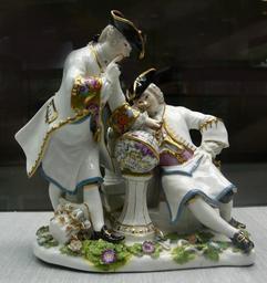 | Keywords: Kaendler Freimaurergruppe KGM HF227.jpg Freimaurerpaar Porzellan Meißen 1744/1745 <br />Kunstgewerbemuseum Berlin Inv Nr HF 227 own 2009 Creator Johann Joachim Kaendler Photo User FA2010 Johann Joachim Kaendler> Ceramics in Kunstgewerbemuseum Berlin Rococo porcelain figures Meissen porcelain sculptures Masonic artifacts Freemasons from Germany People in conversation in art People with globes in art 1745 sculptures | ||||