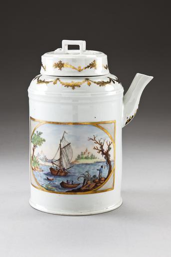 | Keywords: Kaffekanna från 1700-talets slut - Hallwylska museet - 93757.tif LSH artwork sv Cylinderformig kaffekanna med rundad skuldra S-formig pip och insänkt botten Dekor med blom- och bladgirlang i guld samt landskapsmålning inom rektangulär ram Dekor i färger och guld på glasyren Lock med insänkt översida konturerad kant och svagt utsvängd nederkant Fabriken grundlagd 1764 av Johann Wolfgang Hammann som samarbetade med bröderna Johann och Gotthelf Greiner Pris 20 Mk Se rescontra Walther vH 11 juni 1896 original caption Kaffekanna från 1700-talets slut end other date century 18 size cm 13 1 utan lock size cm 14 9 kanna size cm 2 lock size cm 6 2 lock size cm 8 5 HWY place of origin Thüringen DE original filename hm_dig3873 17911 inventory number HWY XLVII XII U c 01 93757 CC-BY-SA Jens Mohr Porcelain in the Hallwyl museum Jens Mohr Media contributed by LSH dim-with multiple size templates Media contributed by LSH 2014-11 |