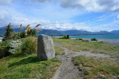 Keywords: kaikoura canterbury new zealand west end aotearoa stone seashore mountain snow sky sea path reed