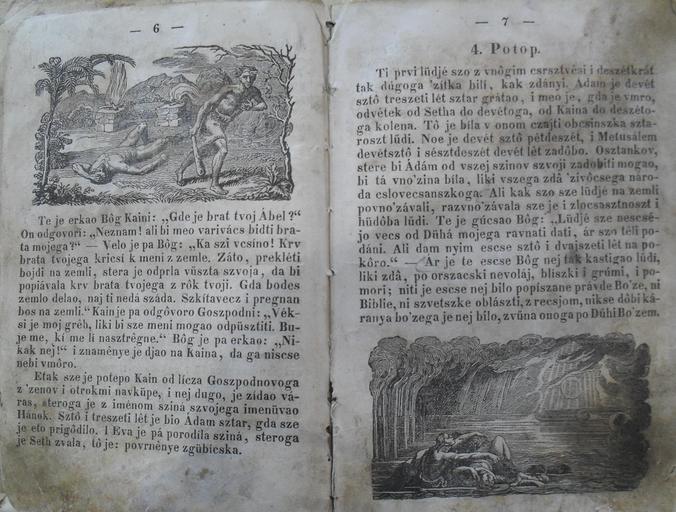 Keywords: Kain buja Abela i Potop (D52BH).JPG en Cain kill Abel; the Deluge from Dvakrat 52 Bibliszke Historie 1847 in prekmurian language prekmurščina hu Káin megöli Ábelt; az Özönvíz a Dvakrat 52 Bibliszke Historie könyvből 1847 Arhiv pokrajinske in študijske knjižnice Murska Sobota User Doncsecz 2010-04-14 Dvakrat 52 Bibliszke Historie Cain and Abel Deluge mythology Bible PD-old |
