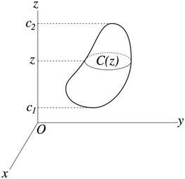 Keywords: KaisekiGairon-338-1.svg en c_1 c_2 are the orthogonal projection from a domain K to the z axis and C z is a cross section surface cut by the perpendicular plane to the z axis 高 貞治:解析概論 改訂第三版[軽装版] p 338 の図 tesigana 2011-01-21 PD-Japan 解析概論