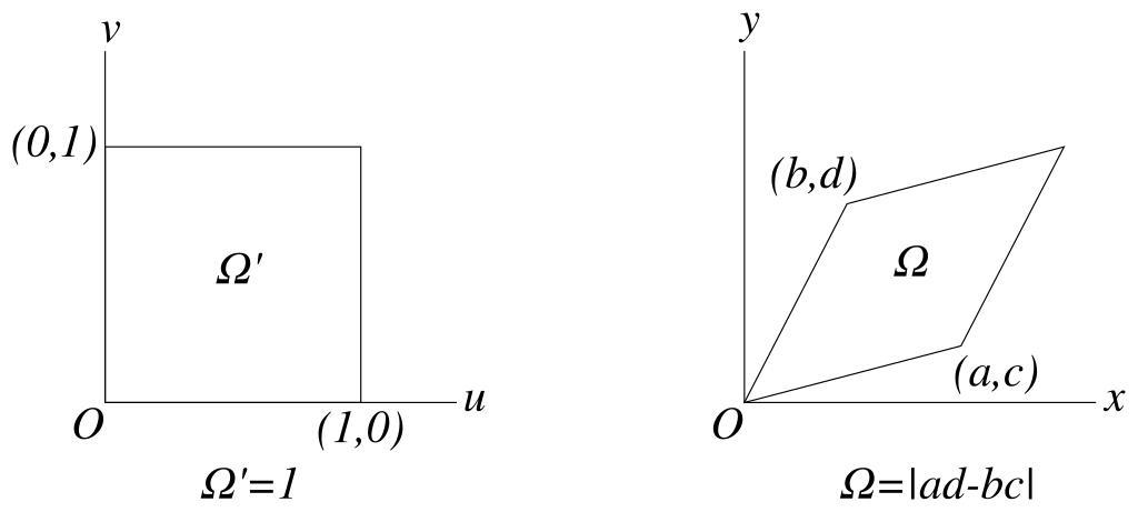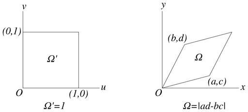 | Keywords: KaisekiGairon-351-1.svg en A unit square \Omega' on the uv-plane and a parallelogram \Omega transformed from \Omega' to the xy-plane by the linear transformation x au+bv y cu+dv 高 貞治:解析概論 改訂第三版[軽装版] p 351 の図 tesigana 2011-01-31 PD-Japan 解析概論 |