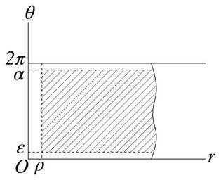 Keywords: KaisekiGairon-356-1.svg en An integral domain r> 0 0< \theta< 2\pi in the r\theta polar coordinate system 高 貞治:解析概論 改訂第三版[軽装版] p 356 つ目の図 tesigana 2011-02-03 PD-Japan 解析概論