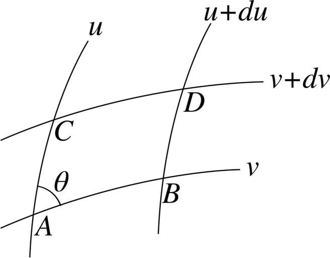 | Keywords: KaisekiGairon-369-1.svg en A surface S is divided into small curved quadrates with u-curves and v-curves and ABCD is one of those quadrates \theta is the angle between the tangent lines of the arcs AB and AC at A 高 貞治:解析概論 改訂第三版[軽装版] p 369 の図 tesigana 2011-02-22 PD-Japan 解析概論 |