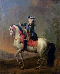 | Keywords: Kaiserin Elisabeth Petrowna von Russland zu Pferde (Grooth).jpg de Kaiserin Elisabeth Petrowna von Russland zu Pferde Öl auf Leinwand 61 x 48 cm Gräflich zu Lynarsche Kunstsammlung 1749 Friederisiko Friedrich der Große Die Essays ed Generaldirektion der Stiftung Preußische Schlösser und Gärten Berlin-Brandenburg Munich Hirmer 2012 p 123 artwork Creator Georg Christoph Grooth file James Steakley PD-Art-100 Georg Christoph Grooth Equestrian portraits of Elizabeth of Russia 1749 portrait paintings 18th-century oil equestrian portraits of women Riding habit in portrait paintings Equestrian portraits of queens Riding crops in art 18th-century oil on canvas paintings 18th-century portrait paintings with black slaves Portraits holding baton Portrait paintings of women wearing tricorne hats Sashes of chivalric orders in portrait paintings Stars of chivalric orders in portrait paintings Females with boots in art Over the knee boots |