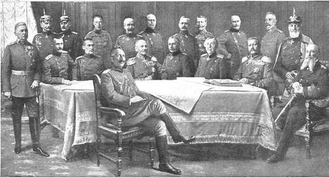 | Keywords: KaiserWilhelmWarCouncilTirpitzHindenburgLudendorffMoltke.jpeg en German kaiser Wilhelm II in one of the first war councils 1914 along with relevant German military Hindenburg Moltke admiral Tirpiz and Ludendorff es El Kaiser presidiendo uno de los primeros Consejos alemanes de la guerra donde tomaron parte entre otras grandes figuras militares del Imperio Híndenburg Moltke el almirante Tirpiz Ludendorff y el príncipe heredero pie de foto Nuevo Mundo 15/11/1918 http //hemerotecadigital bne es/datos1/numeros/internet/Madrid/Nuevo 20Mundo 20 Madrid /1918/191811/19181115/19181115_00000 pdf page 1 p 19 Anonymous 1914 anonymous-EU Wilhelm II of Germany in art 191507 Karl von Bülow 191507 August von Mackensen 191507 Rupprecht Crown Prince of Bavaria 191507 Helmuth Johannes Ludwig von Moltke 191507 Albrecht Duke of Württemberg 191507 William German Crown Prince 191507 Alexander von Kluck 191507 Hermann von François 191507 Erich Ludendorff 191507 Albert Theodor Otto von Emmich 191507 Erich von Falkenhayn 191507 Karl von Einem 191507 Gottlieb Graf von Haeseler 191507 Hans Hartwig von Beseler 191507 Paul von Hindenburg 191507 Theobald von Bethmann Hollweg 191507 Josias von Heeringen 191507 Alfred von Tirpitz 191507 |