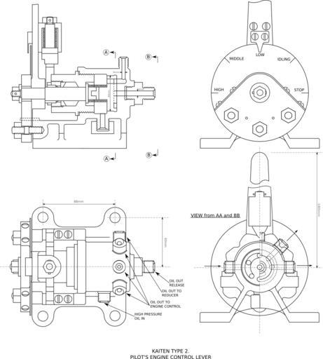 | Keywords: Kaiten type 2 engine speed control-1.svg en Indicative design drawing of the engine control lever form a type 2 kaiten Japanese WW2 suicide torpedo own Lakkasuo 2010-09-19 Vectorised from US Navy sources that are in the public domain cc-by-sa-3 0 GFDL Kaiten Technical drawings |