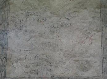 Keywords: Kalkmalerier sankt laurentii falkenberg.jpg Detalje av inskription i Sankt Laurentii kirke Falkenberg Halland own 2010-08 Orf3us Interior of Sankt Laurentii kyrka Falkenberg 2010 in Falkenberg August 2010 in Sweden Churches in Sweden photographed in 2010