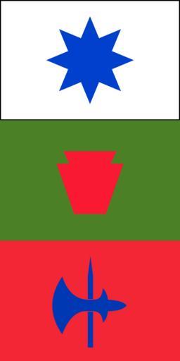 | Keywords: Kalvan-Otherwhen Dralm-emblem Hostigos-flags.svg s contained in the H Beam Piper book except that the halberd head was modified from image File Héraldique meuble hallebarde svg by User Henrysalome made March 2009 by user AnonMoos partially based on halberd vector made July 2007 User AnonMoos except halberd modified from vector outline by User Henrysalome The halberd-head is a modified version of the GFDL/cc-by-sa-2 5 2 0 1 0 image File Héraldique meuble hallebarde svg by User Henrysalome; all other elements in this image were created from scratch by User AnonMoos and are proclaimed to be in the public domain Converted from the following PostScript source code <pre> /L lineto def Dralm 2 setlinewidth 1 481 moveto 1 719 L 359 719 L 359 481 L closepath gsave 1 setgray fill grestore stroke gsave 0 25 8 setrgbcolor 180 600 translate 175 dup scale -500 0 moveto -250 103 553 L -353 553 353 553 L -103 553 250 L 0 500 L 103 553 250 L 353 553 353 553 L 250 103 553 L 500 0 L 250 -103 553 L 353 553 -353 553 L 103 553 -250 L 0 -500 L -103 553 -250 L -353 553 -353 553 L -250 -103 553 L closepath fill grestore Old Hostigos 0 0 moveto 360 0 rlineto 0 241 rlineto -360 0 rlineto closepath 95 15 21 setrgbcolor fill 0 22 7 setrgbcolor 175 661 169 435 moveto 175 661 27 L 186 085 27 L 186 085 169 435 L 180 873 209 L closepath fill 95 15 21 setrgbcolor 2 7 setlinewidth 175 188 99 3806 moveto 185 487 99 3806 L 199 708 99 0227 204 622 91 2336 205 788 76 3447 curveto 205 788 145 452 moveto 204 473 129 112 199 141 121 5 185 487 122 417 curveto 175 188 122 417 L stroke 0 22 7 setrgbcolor 124 437 168 488 moveto 100 214 132 485 95 9099 94 5171 124 437 53 3091 curveto 136 774 83 989 152 097 100 809 175 188 99 3806 curveto 185 487 99 3806 L 199 708 99 0227 204 622 91 2336 205 788 76 3447 curveto 209 83 81 0305 214 111 84 6362 215 938 99 3806 curveto 230 1 99 6501 244 582 101 043 253 538 110 898 curveto 244 475 119 745 230 25 121 229 215 938 122 417 curveto 214 02 135 084 209 957 140 449 205 788 145 452 curveto 204 473 129 112 199 141 121 5 185 487 122 417 curveto 175 188 122 417 L 152 81 122 901 135 337 136 744 124 437 168 488 curveto closepath fill Hos-Hostigos 0 240 moveto 360 0 rlineto 0 240 rlineto -360 0 rlineto closepath 3 5 15 setrgbcolor fill 975 1 2 setrgbcolor 127 034 418 301 moveto 138 69 393 583 L 113 137 393 583 L 148 542 293 149 L 211 458 293 149 L 246 863 393 583 L 221 31 393 583 L 232 966 418 301 L closepath fill showpage EOF</pre> Created with Text Editor Henrysalome relicense OR User Henrysalome AnonMoos Alternate history flags Images with PostScript source code |