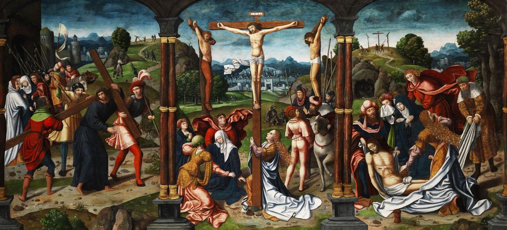 Keywords: Kalvarienberg Altar Österreich Anfang 16 Jh.jpg Largeimage Breitformatiger Tafelaltar mit Kalvarienbergdarstellung Öl auf Leinwand 87 x 187 cm Altar painting with calvary scene oil on canvas 87 × 187 cm http //www hampel-auctions com um 1500 “1510 c 1500 “1510 anonymer österreichischer Maler anonymous Austrian painter PD-old-100 1500s paintings Renaissance paintings of Crucifixion of Christ 16th-century paintings of the descent from the Cross Jesus Christ between the felons 16th-century paintings location missing 16th-century oil on canvas paintings Images from Hampel Auctions Paintings of the passion of Jesus Christ with multiple episodes |
