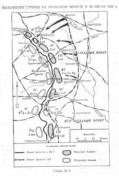| Keywords: Kamenev map 8.jpg en Polish-Soviet front 20 07 1920 ru Положение сто он на польском ф онте к 20 июля 1920 г С С Каменев Бо ьба с белой Польшей Военный вестник 1922 N12 ст 7-17 Записки о г ажданской войне и военном ст оительстве Воениздат 1963 С С Каменев 1922 PD-old Maps of the Polish-Soviet War |