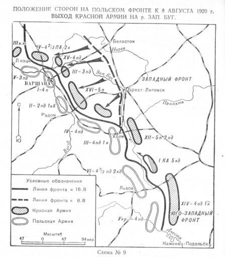 | Keywords: Kamenev map 9.jpg en Polish-Soviet front 8 08 1920 ru Положение сто он на польском ф онте к 8 августа 1920 г Выход К асной А мии на Западный Буг С С Каменев Бо ьба с белой Польшей Военный вестник 1922 N12 ст 7-17 Записки о г ажданской войне и военном ст оительстве Воениздат 1963 С С Каменев 1922 PD-old Maps of the Polish-Soviet War |