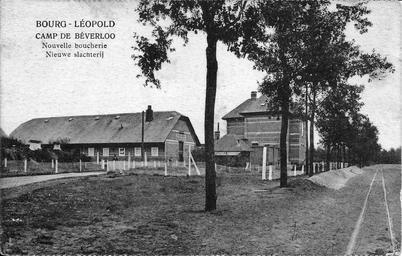 | Keywords: Kamp Beverlo slachterijen.jpg nl Postkaart van Beverlo kamp Langs de buutspoorweglijn Leopoldsburg - Maaseik Pre WWII Postcards without any publishing data at the back author Custom license marker 2013 11 02 Anonymous-EU Uploaded with UploadWizard Kamp Beverloo Postcards of Belgium Former vicinal railway lines in Belgium Butcher's shops in Belgium |