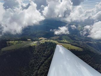 Keywords: kandel from the glider black forest forest landscape clouds trees glider sky mountain summit fly aircraft air sports glider pilot air gliding