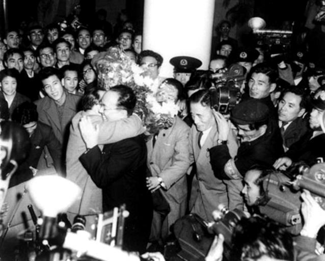 | Keywords: Kanemon Nakamura III Returns from Beiging China 6 Nov 1955.jpg 時亡命 先の中国・北京から三年ぶりに帰国した三代目中 翫右衛 (右・ 鏡)と出迎える四代目河原崎長十郎 http //mainichi jp/select/wadai/newsbox/box/archive/news/2009/11/20091029org00m040016000c html est mid-1950s 毎日新聞 1955-11-06 PD-Japan-oldphoto Kanemon Nakamura III Uncategorized 2014 November 3 |