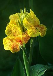 Keywords: kanna kanna yellow tiger flowers yellow flowering closeup boost flower buds floral cup the stem green yellow plant flower a flower garden ornamental plants flora summer insolence dumność morning light