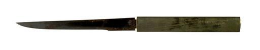 | Keywords: Kano Natsuo - Kozuka with Man and Ox - Walters 5111994 - Back.jpg At the right of the composition a man is struggling to tie an ox to a tree This is part of a mounted set between 1828 1898 late Edo-Meiji silver gold shakudo copper alloy or sentoku cm 21 accession number 51 1199 4 21682 William T / Henry Walters Collection Baltimore date and mode of acquisition unknown Walters Art Museum Henry Walters Acquired by William T or Henry Walters Signature kita okina zu / natsuo place of origin Edo present-day Tokyo Japan Walters Art Museum license Tosogu Japanese sword fittings in the Walters Art Museum Kano Natsuo Media contributed by the Walters Art Museum needs category review |