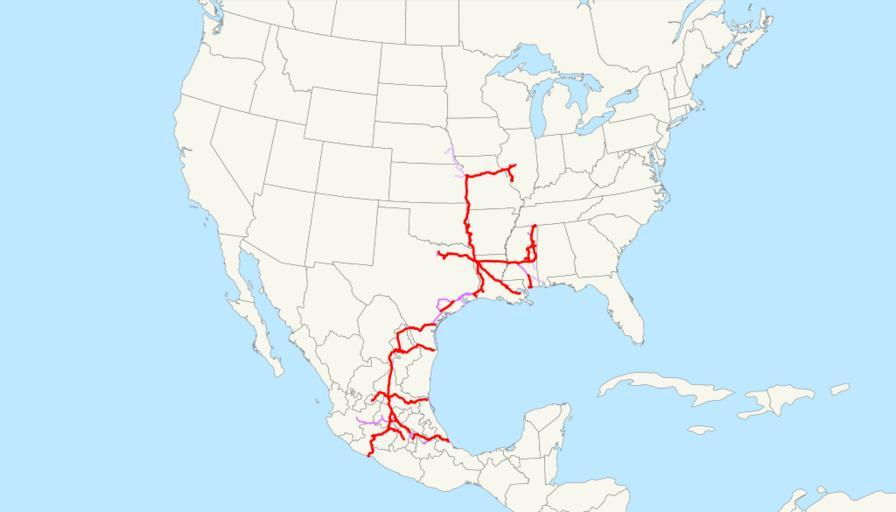 | View Original: | Kansas City Southern Railway system map.svg (1119x640) | |||