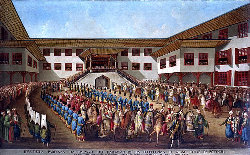 | Keywords: Kapıdağlı Procession of Piotr Potocki.png Artwork Creator Konstantin Kapıdağlı ca 1792 oil canvas cm 85 146 Institution Wilanów Palace Museum accession number object history credit line The envoy was depicted during his departure from Kaimakan Palace http //wilanow-palac pl/galeria/1828/0/foto/0 www wilanow-palac pl See below PD-old-100 DEFAULTSORT 1792 circa; Procession of Piotr Potocki Konstantin Kapıdağlı Paintings in the Wilanów Palace Piotr Potocki Diplomacy of the Polish-Lithuanian Commonwealth Ottoman Istanbul 1790 in the Ottoman Empire |