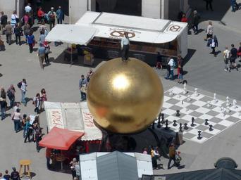 Keywords: kapitelplatz balkenhol mozartkugel chess player chess game play chess street chess sphaera golden ball man fig male figure artwork salzburg austria salzburg cathedral dom cathedral