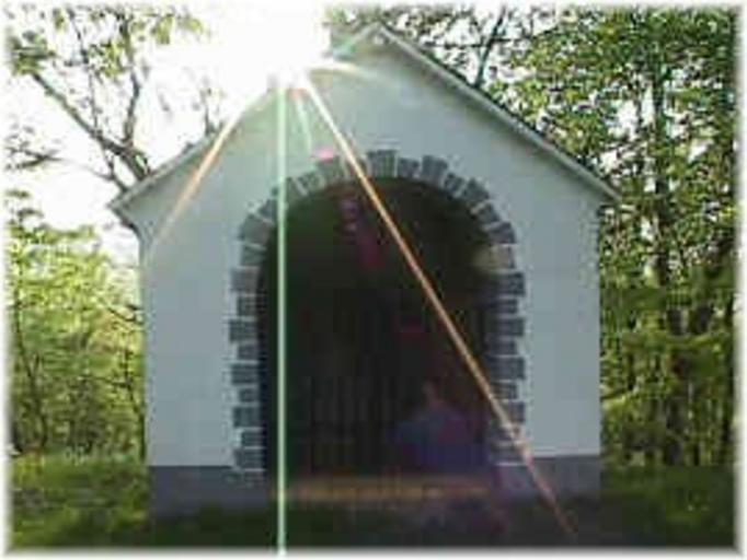 | Keywords: Kapschm.jpg Die Kapelle zur schmerzhaften Mutter Gottes Die Kapelle steht auf einer Anhöhe an der linken Straßenseite der L 143 die von Hinzenburg zum Pluwigerhammer führt Etwa um 1870 wurde die Kapelle von Johann Willwertz gebaut aus Dankbarkeit da er gesund aus dem Krieg nach Hause kam Im Jahre 1959 wurde durch einen Brand das Dach der Kapelle völlig zerstört Danach wurde die Kapelle von Hinzenburger Bürgern renoviert Die Rückwand der Kapelle wurde mit einem Gemälde ausgestattet Mit dem Motiv Jesus mit den schlafenden Jüngern Petrus Johannes und Jakobus am Ölberg Gemalt wurde das Bild von Herrn Josef Theis aus Holzerath Unter dem Bild steht geschrieben Jesus ging in die Nacht und in den Tod um der Menschheit Licht und Leben zu geben Die schmerzhafte Mutter Gottes- Statue erhielt links vom Altar auf einem Sockel ihren Platz später wurde die Statue von Unbekannten gestohlen Die Kapelle wird seit Jahren liebevoll von Fransiska Hegner und Margarete Wagner mit Blumen geschmückt Bernd Hinz Hamm 2006-10-19 Bernd Hinz Hamm PD-release Original upload log de wikipedia Nachcommonsverschieber CommonsHelper de wikipedia Kapschm jpg 2006-10-19 18 52 Hinz666 269×202× 24249 bytes <nowiki>Fotograf Hinz</nowiki> Hinzenburg Chapels in Germany |
