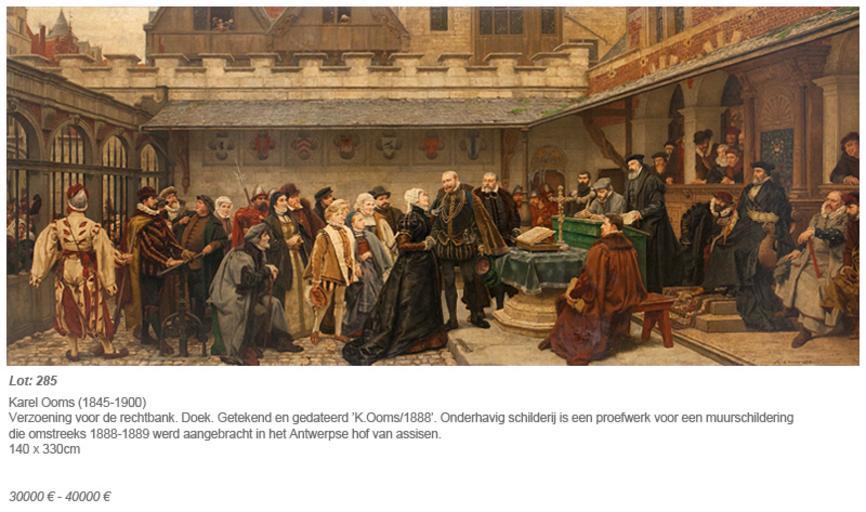 MAKE A MEME View Large Image Karel Ooms - Reconciliation before the tribunal.jpg Artwork Creator Karel Ooms 1888 Oil on canvas size cm 140 330 accession number object history credit line Signed and dated 'K Ooms/1888' Auctioned by Bernaerts 28 April 2013 Antwerpen Lot ...