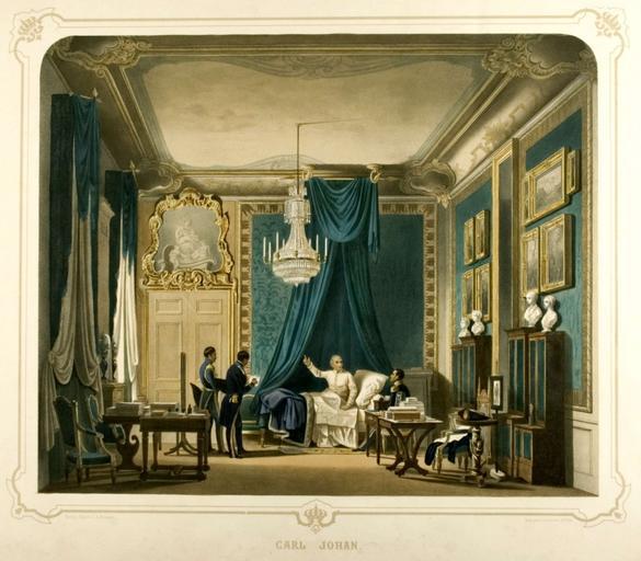 | Keywords: Karl Johan konfererer med embetsmenn fra sengen i sitt sove-og arbeidsværelse pÃ¥ Stockholms slott - Norsk Folkemuseum - NF.1915-0138.jpg Karl Johan konfererer med embetsmenn fra sengen i sitt sove-og arbeidsværelse pÃ¥ Stockholm slott - Norsk Folkemuseum - PÃ¥skrift CARL JOHAN PÃ¥skrift Deroy d'apries C S Bennet / Imp par Lemercier à Par Aksesjon 1915 Deponert til Norsk Folkemuseum Deponert fra Bernadottemuseet InngÃ¥r i utstillingen 1814 “ Spillet om Danmark og Norge ved Norsk Folkemuseum 14 jan 2014 ” 31 jul 2014 NF NF 1915-0138 litografi Lithography Creator Carl Stefan Bennet <gallery> File Sängkammarregementet jpg File Sängkammarregementet crop jpg </gallery> PD-old-100 Karl XIV Johans sängkammare Carl Stefan Bennet 1814 “ Spillet om Danmark og Norge |