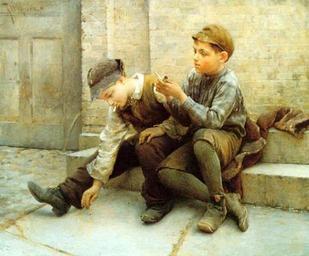 | Keywords: Karl Witkowski - Playing with Fire.jpg Artwork Creator Karl Witkowski Playing with Fire oil canvas 20 x 24 in signed upper left K Witkowski http //americangallery wordpress com/category/witkowski-karl/ http //s002 radikal ru/i200/1011/1b/d7d98f596462 jpg PD-old-auto-1923 1910 Karl Witkowski Paintings of boys Smoking boys in art 19th-century paintings from the United States Uploaded with UploadWizard | ||||