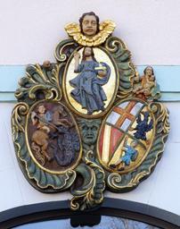 | Keywords: Karlskaserne (Freiburg) 5228.jpg Kartusche über dem Eingang des Jugend und Sozialamts restauriert 2011 Wappenkartusche über dem Eingang der ehemaligen Karlskaserne die drei Stände symbolisierend Oben steht der die Welt erhaltende Christus für den Prälatenstand unten links kämpft der Heilige Georg der die Ritterschaft repräsentiert Rechts unten die Bürgerschaft dargestellt mit den vier Direktorialstädten des dritten Standes Links oben Freiburg daneben der Breisacher Reichsadler unten links Neuenburg am Rhein und daneben das Waldshuter Männle als Waldhüter gedeutet own 2011-03-12 11 03 02 joergens mi User Joergens mi/licence 47 9977602700 7 85308957000 PD-old Jömi 201103 Karlskaserne Freiburg im Breisgau Reliefs of coats of arms in Freiburg Coats of arms of Freiburg im Breisgau |
