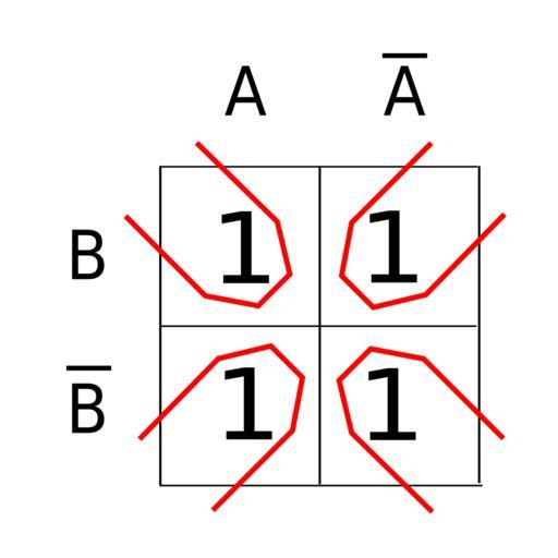 Keywords: Karnaugh map KV 2mal2 Gruppe 2.svg Karnaugh_map with 2 variables Own 2007-10 RosarioVanTulpe 2x2 Karnaugh maps