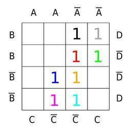 Keywords: Karnaugh map KV 4mal4 Gruppe01d.svg Karnaugh_map with 6 variables Own 2007-10 RosarioVanTulpe 4x4 Karnaugh maps