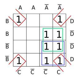 Keywords: Karnaugh map KV 4mal4 Gruppe01i.svg Karnaugh_map with 6 variables Own 2007-10 RosarioVanTulpe 4x4 Karnaugh maps