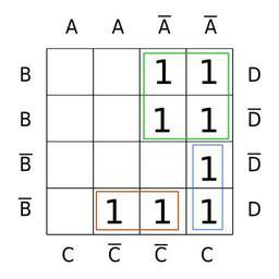 Keywords: Karnaugh map KV 4mal4 Gruppe02.svg Karnaugh_map with 2 variables Own 2007-10 RosarioVanTulpe 4x4 Karnaugh maps