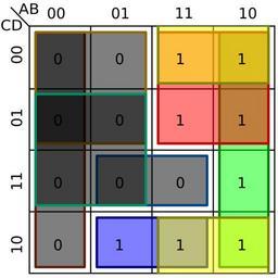 Keywords: Karnaugh map KV K-map 2.svg Karnaugh_map with 2 variables Own 2007-10 RosarioVanTulpe 4x4 Karnaugh maps
