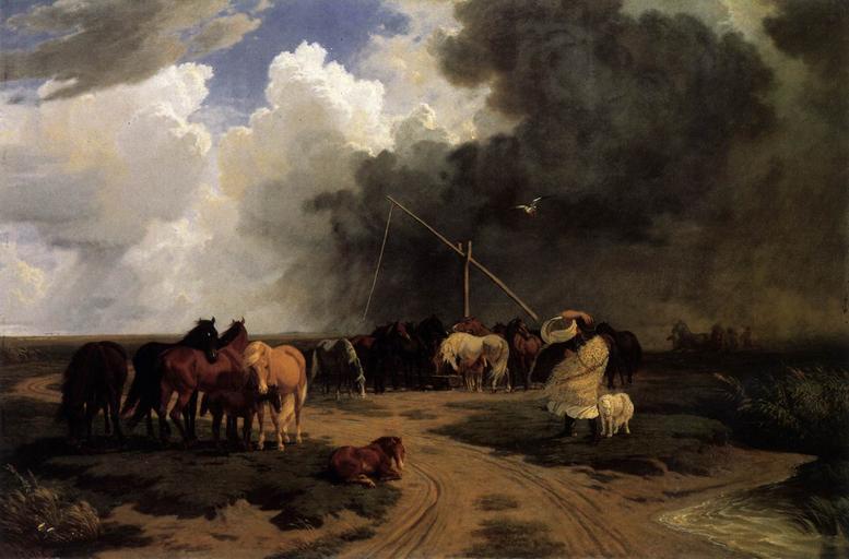 | Keywords: Károly Lotz (1833-1904) Stud in a Thunderstrom 1862.jpg Artwork Creator Károly Lotz 1862 Oil on canvas Size cm 191 5 126 5 Institution Hungarian National Gallery object history exhibition history credit line accession number 2742 Fine Arts in Hungary http //www hung-art hu/kep/l/lotz/muvek/menes_zi jpg http //www hung-art hu/index-en html PD-old-100 Paintings by Károly Lotz in the Hungarian National Gallery Shadoofs in art Horses in art of Hungary Hungary Thunderstorms in art 1862 paintings in Hungary |