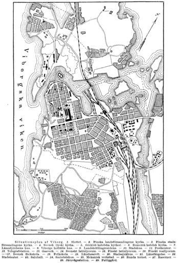 | Keywords: Karta över Viborg under tidigt 1900-tal.png Legend 1 Castle 2 Church of the Finnish municipality of the surrounding county 3 Church of the Finnish municipality of the city 4 Swedish church also giving services in german 5 Greec-Catholic churches 6 Roman catholic church 7 County administration building 8 House of Viborg highest court 9 County governor's residence 10 Town hall 11 Main Post office 12 Telegraph office 13 Gasworks 14 Swedish classical high school 15 Finnish classical high school 16 Finnish 'real' practical high school 17 Swedish girls' school 18 Public elementary school 19 Communal general hospital 20 City hospital 21 County jail 22 City theater 23 Market hall 24 Hotel and restaurant 'Societetshuset' 25 Mechanical workshop 26 Medieval building 'Runda tornet' round tower 27 Military tenments 28 Railway station 29 Poor-house Karta över Viborg under tidigt 1900-tal senast 1921 Källa Nordisk familjebok 1921 band 32 sida 207-208 http //runeberg org/nfcl/0120 html 2004-06-25 page is/was http //sv wikipedia org/w/index php title Image 3AKarta_ C3 B6ver_Viborg_under_tidigt_1900-tal png here Original uploader was Den fjättrade ankan at http //sv wikipedia org sv wikipedia original upload log All user names refer to sv wikipedia 2004-06-25 00 13 Den fjättrade ankan 782×1150×8 132480 bytes <nowiki>från Nordisk familjebok</nowiki> Maps of Vyborg Maps in Swedish Vyborg in the 1900s |