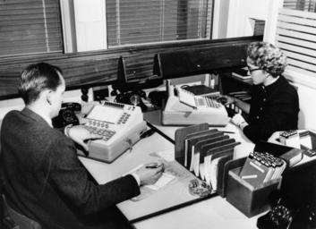 | Keywords: Kastrup Airport (11).jpg Kastrup Airport CPH Copenhagen Denmark Information about the booking situation is fed into the electronic brain at SAS's new Air terminal att Kastrup 1960s Information on the booking situation om 50 000 diffrent route legs is fed into the electronic brain in SAS new Air Terminal in copenhage Passengers' questations are answered in one third of a second via agent-operated interrogator sets The installation is Europe's first electronic reservations system s 1960 http //images flysas com SAS Scandinavian Airlines PD-Denmark50 Files uploaded by Russavia Media from SAS Scandinavian Airlines Uploaded with VicuñaUploader Copenhagen Airport |