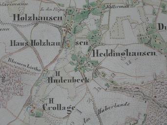 | Keywords: Katasterkarte Quernheim 002.jpg Preußisch Oldendorf Kartenauschnitt von Haus Holzhausen Schloss Crollage Gut Hudenbeck heute Preußisch Oldendorf Kreis Minden-Lübbecke Nordrhein-Westfalen damals Provinz Westfalen Preußen Part of a map showing Crollage Castle etc that is today in Preußisch Oldendorf District of Minden-Lübbecke North Rhine-Westphalia Germany and was back then in Prussian Province of Westphalia TUBS/Translation Title of original Titel des Original Grad Abtheilung 53°/52° der Breite 26°/27° der Länge; Bande III Blatt 2 Königlich Preussische Landes-Aufnahme Kartografische Abtheilung aufgenommen und gezeichnet im Jahre 1837 von v Kalckstein Prem Lieut 6<sup>ten</sup>Inf Rgts ---- Umschrift Reproduktion Title Reproduction Preußische Kartenaufnahme 1 25 000 -Uraufnahme- 3717 Kirchlengern Die Blattnummer und der Blattname in Klammern entsprechen denen der heutigen Topographischen Karte 1 25 000 TK 25 Das Original dieses farbig gezeichneten Kartenblattes befindet sich im Besitz der Staatsbibliothek zu Berlin - Preußischer Kulturbesitz - Unter den Linden 8 Berlin Landesvermessungsamt Nordrhein-Westfalen Hrsg Landesvermessungsamt Nordrhein-Westfalen Druck Pensky GmbH Karslruhe 1837 H v Kalckstein Prem Lieut 6<sup>ten</sup>Inf Rgts ---- uploaded and photo taken by hochgeladen und abfotografiert von TUBS IXUS 500 thumb left Ganze Karte Whole map PD-old TUBS/Credits Maps of Preußisch Oldendorf Schloss Crollage Gut Hudenbeck Maps by Royal Prussian Land Survey |