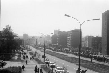 | Keywords: Katowice.1maja1971or72.jpg pl Demonstracja 1-majowa w Katowicach ul Armii Czerwonej dziś al Wojciecha Korfantego w 1971 lub 1972 Na drugim planie widoczny po lewej Spodek i skrzyżowanie z ul Morcinka w oddali słabo widoczne rondo Chorzowska/Roździeńskiego Fotografia wykonana z okna na I piętrze budynku nr 57 w kierunku południowym own Julo or 1971 1972 Julo Korfantego Street in Katowice 1st of May in Poland International Workers' Day | ||||
