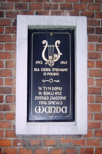 Keywords: Katowice - Dąbrówka Mała Wanda.JPG en Dąbrówka Mała pl Tablica pamiątkowa na budynku dawnej siedziby Towarzystwa Śpiewu Wanda w Katowicach - Dabrówce Małej own Michał Bulsa Lahcim nitup 2010-02-19 Le Ronda Street in Katowice Dąbrówka Mała Plaques in Katowice |