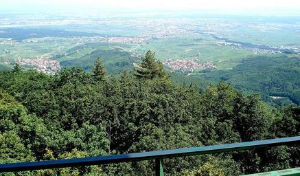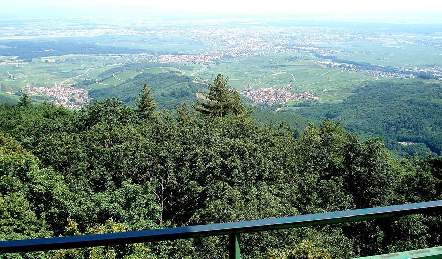 | Keywords: Katzenthal Galtz.JPG fr Vue prise depuis le sommet vosgien du Galtz alt 731m sur le versant oriental des Vosges Coup d'oeil vers l'est-sud-est Au nord à gauche sur la photo juste au-dessus des frondaisons proches le village de Katzenthal avec son clocher blanc et le château ruiné de Wineck un peu en contrehaut à gauche Plus au sud c -à-d à droite à peu près à même distance de l'observateur le village de Niedermorschwihr église sombre clocher ramassé Les deux villages sont séparés par la colline appelée Winterberg On aperçoit la RN 415 «Route du Vin» passant à quelques centaines de mètres en avant de Katzenthal Au loin la plaine d'Alsace où s'étale l'agglomération colmarienne La rambarde à l'avant-plan ceinture le socle de la statue du Christ érigée au sommet du Galtz own Torsade de Pointes 2008-07-25 Domaine public 48 06 28 5 N 7 14 47 8 E Geography of Haut-Rhin Landscapes of Alsace Katzenthal Remote views of Colmar Landforms of Haut-Rhin |