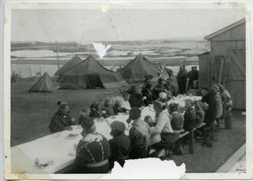 | Keywords: andre verdenskrig andreverdenskrig frigjøring feiring vårslipp 2015 vårslipp2015 kautokeino / guovdageainnu kautokeinoguovdageainnu finnmark norge Original bildetekst: Vi stekte vafler, dekket bord ute, kokkene som bor i teltene her, kokte kakao, ellers hadde vi en pakke kjeks, og en plate melkesjokolade til hver. Gjestene kom og man gikk til bords, barn i alle aldre. Fotografiet kommer fra et album gitt til Riksarkivet av sykepleier Marie Lysnes. Våren 1945 deltok hun i opprettelsen av et feltsykehus i Finnmark. Lysnes dokumenterte oppholdet i Finnmark gjennom tekst og bilder. Albumet er en del av privatarkivet etter Marie Lysnes. Arkivreferanse: PA-0873: Lysnes, Marie, Riksarkivet. Original bildetekst: Vi stekte vafler, dekket bord ute, kokkene som bor i teltene her, kokte kakao, ellers hadde vi en pakke kjeks, og en plate melkesjokolade til hver. Gjestene kom og man gikk til bords, barn i alle aldre. Fotografiet kommer fra et album gitt til Riksarkivet av sykepleier Marie Lysnes. Våren 1945 deltok hun i opprettelsen av et feltsykehus i Finnmark. Lysnes dokumenterte oppholdet i Finnmark gjennom tekst og bilder. Albumet er en del av privatarkivet etter Marie Lysnes. Arkivreferanse: PA-0873: Lysnes, Marie, Riksarkivet. |