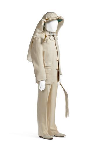 | Keywords: Kavajkostym bestående av kavaj, väst och byxor. Tillhört Walther von Hallwyl - Hallwylska museet - 89103.tif  KOSTYM kavaj- <br/><br/>Bestående av kavaj väst och byxor <br/><br/>Av vit cheviot samt med gulvita benknappar Hand- och maskinsydda <br/><br/>Kavaj Enradig livskuren med fyra knappar samt nedviken krage och korta slag i det vänstra ett knapphål; framstyckenas hörn rundade Ryggen med sid- och axelsömmar Knapparna runda fyrhåliga med plan framsida och stavformig kant Foder av smalrandigt vitt siden alpacka på högra framstycket en bröstficka; ärmfoder av smalrandigt crèmegult halvsiden <br/><br/>Mått Ärmhålsdjup 23 cm ; längd hel 76 cm ; ryggbredd halv 19 cm ; ärmlängd 80 cm ; bröstvidd fram 44 cm ; bröstvidd hel 106 cm ; livvidd 98 cm <br/><br/>Väst Enradig med sex knappar som de mindre i kavajen korta vinkelskurna slag samt två svagt snedskurna sidofickor samt på vänstra framstycket dessutom en dylik bröstficka alla med rak kantslå Ryggstycke av vit ylleklot ett stycke från nedre kanten två spänntampar med spänne av svartlackerad mässing och med två taggar tornar Nedtill i mitten ett sprund Fodret i rygg- och framstycken av blommig vit bomullssatin <br/><br/>Mått Schalöppning 31 cm Hel västlängd 70 cm <br/><br/>Byxor Upptill på vardera framstycket en snedskuren tvärficka Midjeband med hake och hyska knapp och knapphål samt sex hängselknappar Gylfen med fyra små knappar ock knapphål Midjebandet fodrat med rött skinn saffian bak- och gylffoder av vitt bomullstyg Fickor av vitt bomullstyg Knapphålen handsydda med vitt grovt silke eller vit bomullstråd <br/><br/>Mått Yttersöm längd 106 cm ; innersöm längd 82 cm ; livvidd 82 cm ; stussvidd 108 cm ; lårvidd 66 cm ; knävidd 48 cm ; vidd nedtill 46 cm <br/><br/>Förfärdigade efter beställning av Walther von Hallwyl i Oktober 1900 hos skrädderifirman Fr Kaedings Efterträdare Zittorin Lundvik hovleverantörer <br/><br/>Begagnad av Walther von Hallwyl under hans resa genom Egypten och Sudan tillsammans med sin maka dotter och svärson samt fröken Ida Uhse den 5 November 1900 till 29 Mars 1901 original caption Kavajkostym bestående av kavaj väst och byxor Tillhört Walther von Hallwyl Foto till boken Ett sekel av dräkt och mode ur de Hallwylska samlingarna <br/> Nyckelord Kavajer Cheviot Walther von Hallwyl Zittorin Lundvik Resedräkter Resa Föremålsbild Skor Ett sekel av dräkt och mode ur de Hallwylska samlingarna HWY Walther von Hallwyl place of origin Stockholm SE original filename hm_dig3307 8246 inventory number HWY XXI I A 03 89103 CC-BY-SA Jens Mohr <gallery caption Different images of same object > File Gentlemannen - om män och mode - Hallwylska museet - 85871 tif File Gentlemannen - om män och mode - Hallwylska museet - 85872 tif File Gentlemannen - om män och mode - Hallwylska museet - 85873 tif File Detalj av kostym Foto till boken Ett sekel av dräkt och mode ur de Hallwylska samlingarna - Hallwylska museet - 89347 tif File Kostym detalj Foto till boken Ett sekel av dräkt och mode ur de Hallwylska samlingarna - Hallwylska museet - 89386 tif </gallery> Jens Mohr Walther von Hallwyl Footwear Clothing on white background Clothing in the Hallwyl museum Male clothing Trousers Media contributed by LSH unmatched objKeyword Media contributed by LSH unmatched creator Media contributed by LSH unmatched keyword Media contributed by LSH 2013-10 |