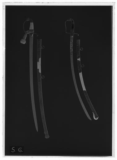 | Keywords: Kavalleriofficerssabel, Sverige, 1800-talets första hälft, fäste av s. k - Livrustkammaren - 60708-negative.tif Fäste av förgylld reliefornerade mässing kappa framtill i form av ett lejonhuvud med manen inramad av en slät list och baktill övergående i en nedåtgående hylsa utgörande kavelns överdel denna ornerad med stiliserade blad Handbygel i sin helhet bågformig överdelen intappad i lejongapet Mellandelen på båda sidor med ranka av klockformiga blad på mitten avbruten av en långsträckt rosett Bakre parerstång nedåtböjd ornerad med enkla snedställda blad och avslutad med en liten rosettornerad skiva Styrskenor stora formade som romber med insvängda sidor och tvärt avskurna hörn samt ornerade med en bröstbild av Minerva i profil åt v <br/>Kavel av ebenholts med mjukt rektangulärt tvärsnitt ut- och insidan med tätt inskuret rombiskt rutmönster <br/><br/>Klinga böjd eneggad högglanspolerad med vulstformig rygg Det 332 mm långa spetspartiet tvåeggat eggen dock oslipad original caption ca other date - 1800 1850 steel b2 - blankvapen - klinga material stål - brass b1 - blankvapen - fäste material mässing - ebony b6 - blankvapen - kavel och kavelklädsel material ebenholts size mm 1026 size mm 128 size mm 883 klinga size mm 32 klinga g 900 LRK Gustav hertig av Uppland prins 1827-1852 Haga slott Sverige place of origin original filename LN_B04967_007847 42173 inventory number LRK 5549 60708 CC0 Kavalleriofficerssabel Sverige 1800-talets första hälft fäste av s k - Livrustkammaren - 60708 tif <gallery caption Different images of same object > File Kavalleriofficerssabel Sverige 1800-talets första hälft fäste av s k - Livrustkammaren - 35806 tif </gallery> |