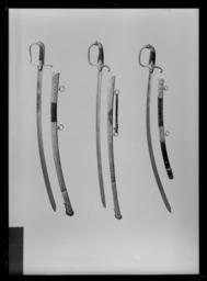 | Keywords: Kavalleriofficerssabel, Sverige 1810-1818 med fäste av s.k - Livrustkammaren - 60749.tif LSH artwork sv Fäste av förgylld reliefornerad mässing kappa framtill i form av ett<br/>lejonhuvud med manen inramad av en slät list och baktill övergående i en<br/>nedåtböjd hylsa utgörande kavelns överdel denna ornerad med stiliserade<br/>blad på baksidans förlängda nederdelen stjärnliknande rosett Handbygel<br/>i sin helhet bågformig överdelen intappad i lejongapet mellandelen på<br/>båda sidor med en ranka av klockformiga blad på mitten avbruten av en<br/>långsträckt rosett Bakre parerstång nedåtböjd ornerad med enkla snedställda<br/>blad och avslutad med en liten rund rosettornerad skiva Styrskenor stora <br/>formade som romber med insvängda sidor och tvärt avskurna hörn samt ornerade med en bröstbild av Minerva i profil åt vänster <br/>Kavel av ebenholts med mjukt rektangulärt tvärsnitt ut-och insidan med tätt inskuret rombiskt rutmönster <br/>Klinga böjd eneggad och med plan rygg spetspartiet med ryggsidan konkavt<br/>insvängd mot eggsidan Ut-och insidan med bred hålkäl nående fram till<br/>ett avstånd av ca 125mm från spetsen På starka delens båda sidor etsad<br/>och förgylld ornering Nedtill ett rektangulärt fält inramat av förgylld<br/>bård härovanför liten trofégrupp med oval sköld vari otydligt tre kronor <br/>längst upp ett trekronorsvapen i oval sköld omgivet av lagerkrans Mellan<br/>trofégruppen och den ovala trekronorsskölden på utsidan under kunglig krona<br/>monogram av dubbelt C omslutande ordningssiffran XIII Karl X1II under<br/>monogrammet ett svärd korsat med ett ankare på insidan under svensk hertig-krona ett monogram av CJ kronprins Karl Johan under monogrammet två korsade svärd original caption - 1810 1818 ebony b6 - blankvapen - kavel och kavelklädsel material ebenholts - steel b2 - blankvapen - klinga material stål - brass b1 - blankvapen - fäste material mässing g 660 size mm 954 size mm 817 klinga size mm 138 size mm 26 klinga LRK place of origin original filename LN_B05377_008257 47539 inventory number LRK 10974 60749 CC0 Kavalleriofficerssabel Sverige 1810-1818 med fäste av s k - Livrustkammaren - 60749-negative tif Sabre images from Livrustkammaren Media contributed by LSH dim-with multiple size templates Media contributed by LSH 2015-11 |